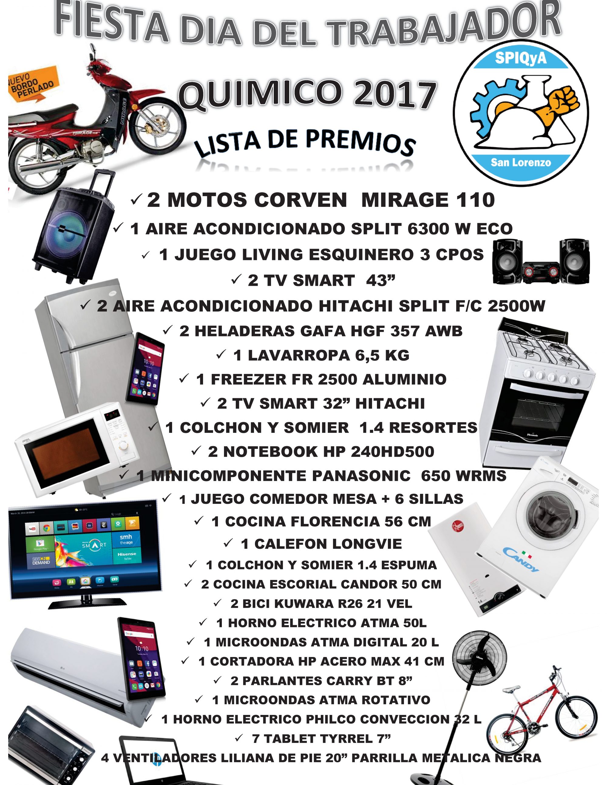 De los sorteos participaron todos los afiliados y afiliadas presentes, y también a quienes les tocó trabajar en el turno tarde. Más de 40 premios entre los que se incluyeron dos motos, electrodomésticos y amoblamiento.