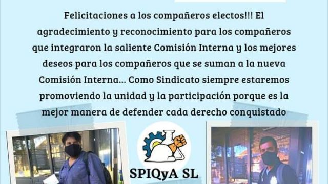 Agradecemos profundamente a todos los compañeros que con su voto dan vida a la democracia obrera, al igual que a cada uno de los delegados electos por su responsable dedicación y desinteresada participación, tanto los electos recientemente como los compañeros que habiendo formado parte de las comisiones internas dejan en esta oportunidad sus cargos. Felicitaciones para todxs!